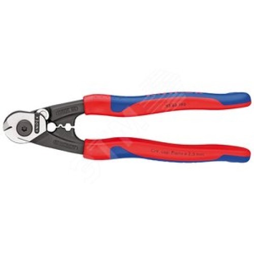 Тросорез компактный рез: кабель 7 мм проволочный трос 5 мм проволока средней твёрдости 4 мм рояльная струна (42 HRC) 25 мм L-190 мм зоны для обжимки концевых гильз на боуденовские и тяговые тросы чёрный 2-компонентные рукоятки