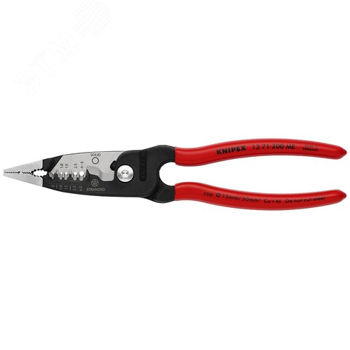 Клещи электромонтажные, 5 в 1, зачистка 0.75 – 4 / 6 мм2, рез d 15 мм / 50 мм2, 200 мм, фосфатированные, обливные ручки, SB