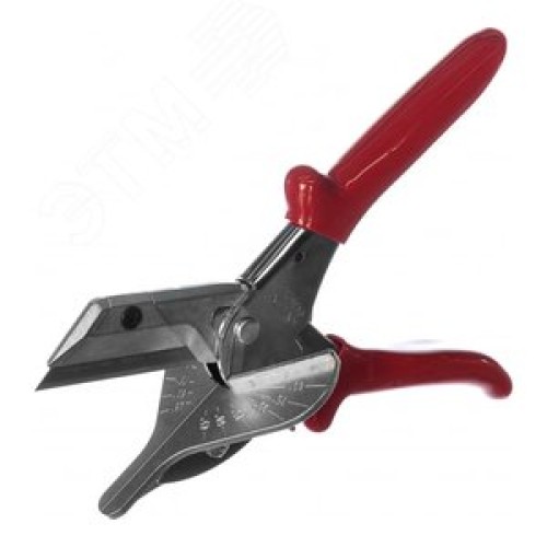 Ножницы угловые для пластмассовых и резиновых профилей для резки ленточного кабеля до 56 мм с пружиной разметка реза под углами 45° 60° 75° 90° L-215 мм хромированные обливные рукоятки