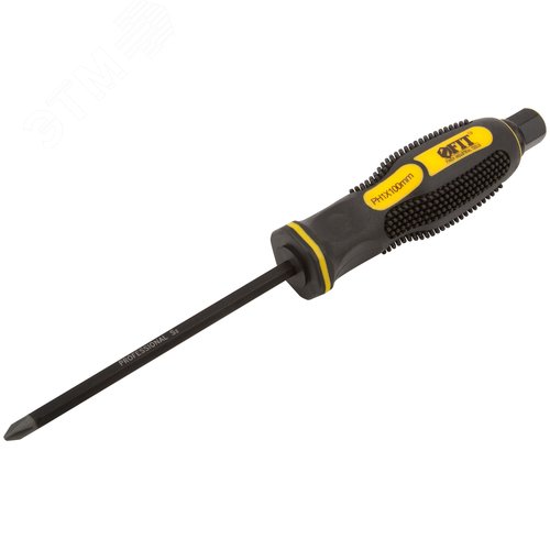 Отверткa ударная, сталь S2, шестигран.жало, боек под ключ, прорезиненная ручка, Профи 5х100 мм PH1