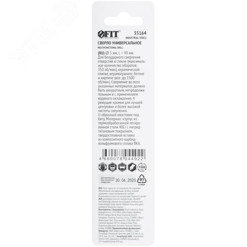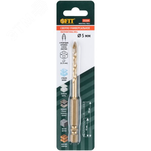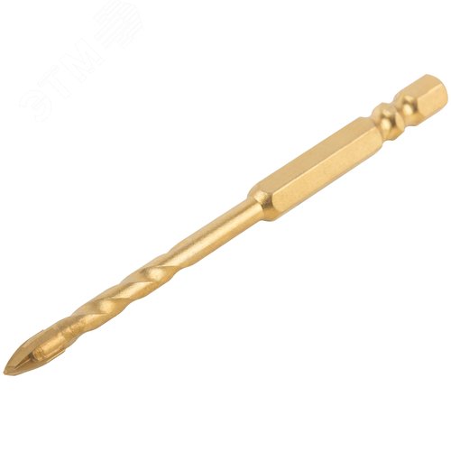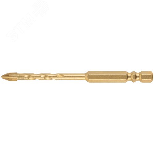 Сверло универсальное, 4 режущие кромки, титановое покрытие, шестигранный U-хвостовик под биту, 5х90 мм