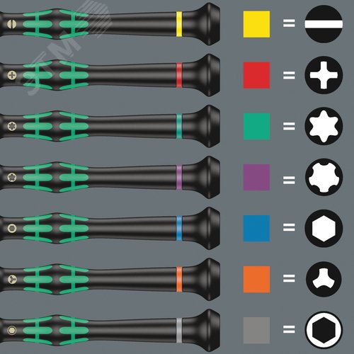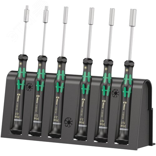 Дополнительная информация Идентификаторы инструментов ''Take it easy'' цветовая кодировка профиля наконечника и маркировка размера на ручке отвёртки. Применение - винты с шестигранной головкой Исполнение 6 предметов в картонной упаковке + подставка, 1 x 2.0x60, 1 x 2.5x60, 1 x 3.0x60, 1 x 3.5x60, 1 x 4.0x60, 1 x 5.0x60