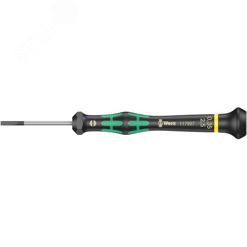Дополнительная информация Винты с шлицем. Рабочий конец - круглый. Исполнение - матовый никель, наконечник Black Point. Ручка Kraftform Micro с защитой от перекатывания и подвижной головкой, многокомпонентная. Идентификаторы инструментов ''Take it easy'' цветовая кодировка профиля наконечника (желтый цвет - шлиц) и маркировка размера на ручке отвёртки. 0.35x2.5x40