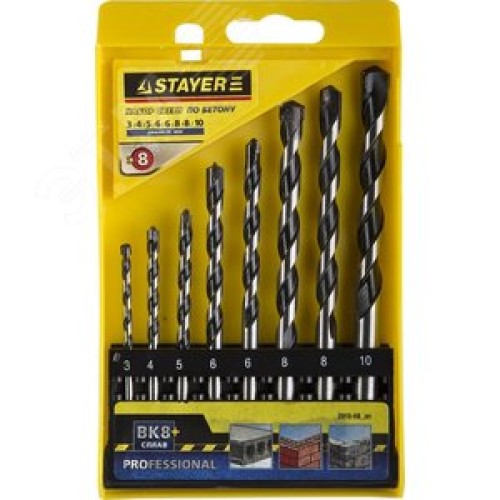 Сверло по бетону ProHammer 8 шт: d 3-4-5-6-6-8-8-10 мм