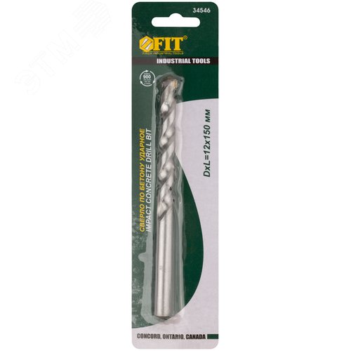 Сверло победитовое ударное, цилиндрический хвостовик (для бетона, кирпича) 12х150 мм