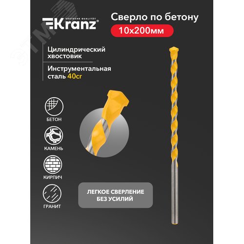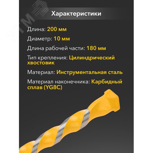 Сверло по бетону 10х200 мм, цилиндрический хвостовик