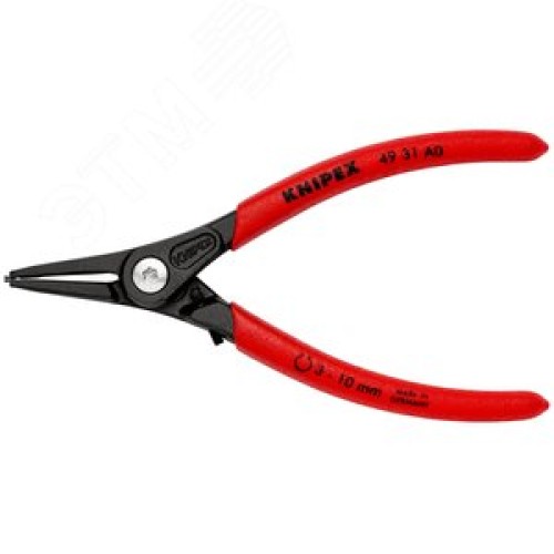 Щипцы прецизионные для внешних стопорных колец с ограничителем раскрытия прямые губки посадочный размер 3-10мм диаметр наконечников 09мм L=140мм Cr-V черные обливные рукоятки