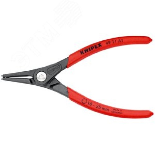 Щипцы прецизионные для внешних стопорных колец прямые губки посадочный размер 10-25мм диаметр наконечников 13мм L=140мм Cr-V обливные рукоятки блистер цвет черный