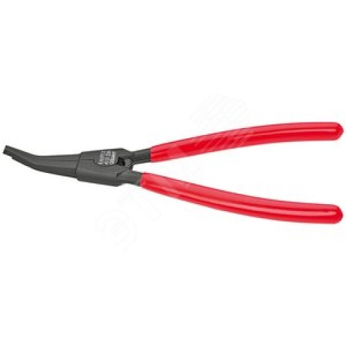 Щипцы для подковообразных пружинных стопорных колец на валах губки под углом с центрующим отверстием min зазор на кольце 22мм L=170мм Cr-V для колец более 12мм для автомобильных карданных валов