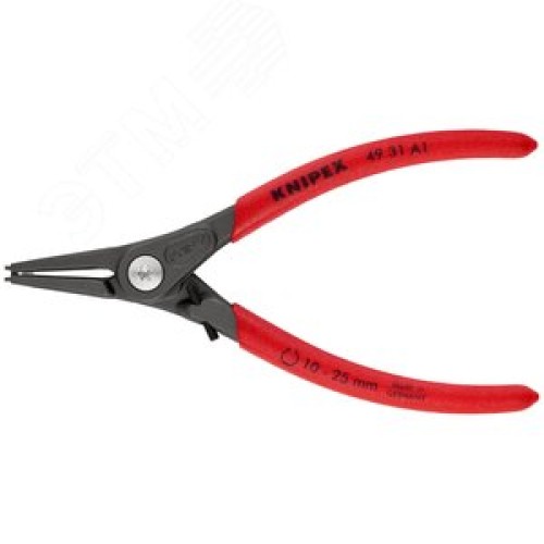 Щипцы прецизионные для внешних стопорных колец с ограничителем раскрытия прямые губки посадочный размер 10-25мм диаметр наконечников 13мм L=140мм Cr-V черные обливные рукоятки