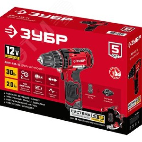 Дрель-шуруповерт 12В, 1 АКБ (2Ач), в коробке
