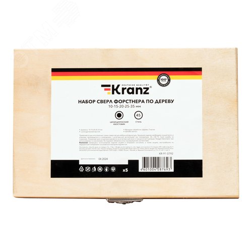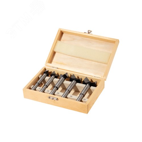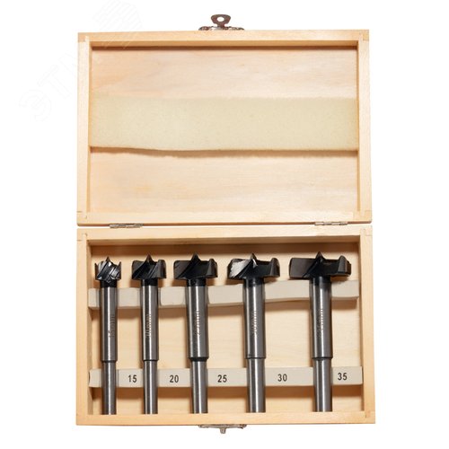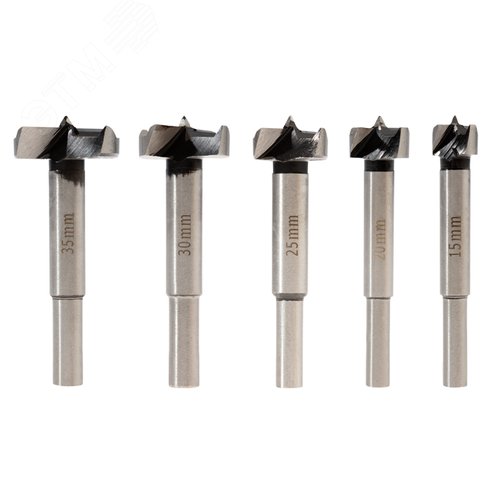Набор сверл Форстнера (петельных) по дереву, 10-15-20-25-35 х 73 мм, 5 шт, цилиндрический хвостовик
