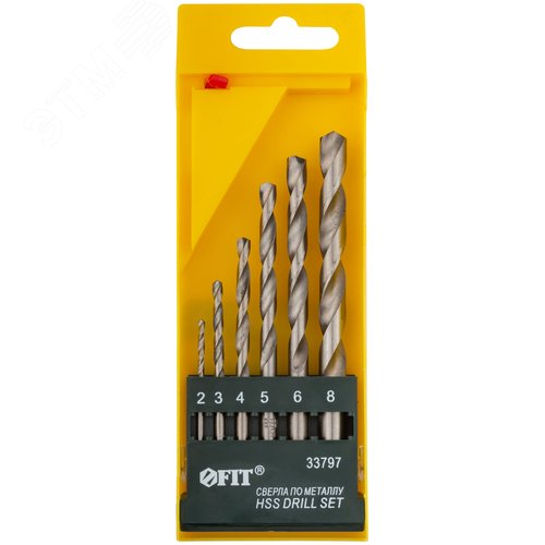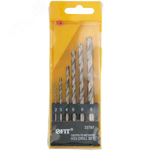 Набор сверл по металлу HSS полированных, 6 шт (2-3-4-5-6-8 мм)