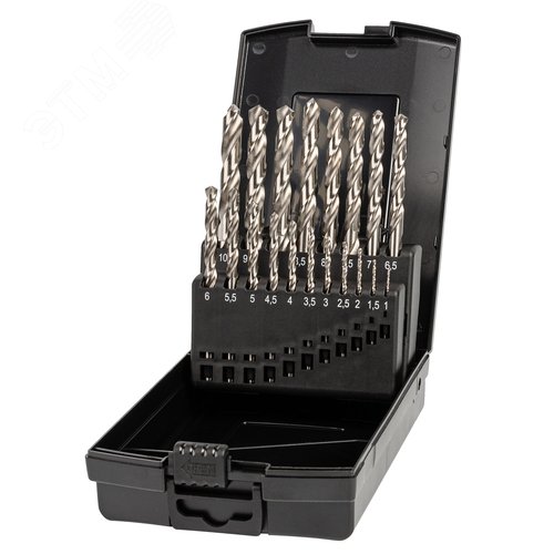 Набор сверл по металлу, индустриальных, 19 предметов, 1,0-10,0 мм x 0,5, DIN 338, HSS-G, Тип N, 5xD