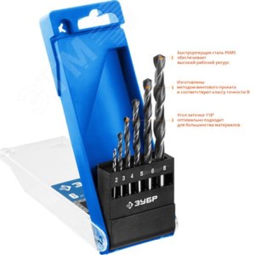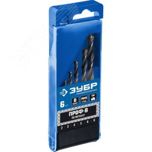 Набор сверл по металлу сталь Р6М5 класс В, ПРОФ-В 6шт(2-8мм)