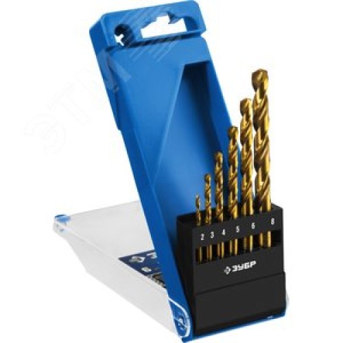 Набор сверл по металлу, сталь Р6М5, класс А , титановое покрытие ТИТАН 6шт(2-8мм)