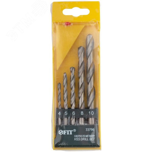 Набор сверл по металлу HSS полированных, 5 шт (4-5-6-8-10 мм)