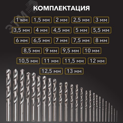 Комплектация сверло по металлу – 25 шт.