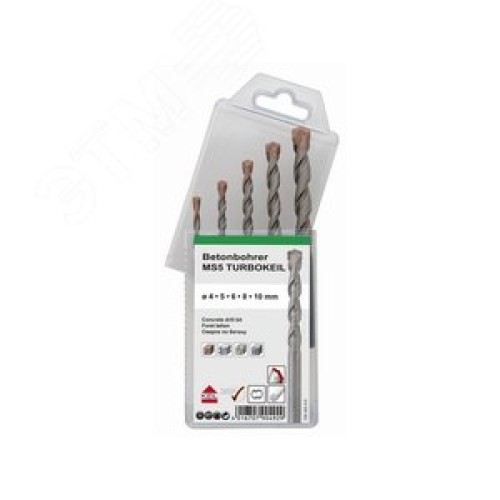 Комплектация Сверло TURBOKEIL 4x85x40 мм - 1 шт. Сверло TURBOKEIL 5x85x50 мм - 1 шт. Сверло TURBOKEIL 6x100x60 мм - 1 шт. Сверло TURBOKEIL 8x120x75 мм - 1 шт. Сверло TURBOKEIL 10x120x75 мм - 1 шт.