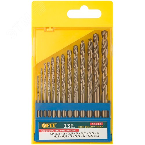 Набор сверл HSS по металлу с добавкой кобальта 5%, 13 шт. (1,5-2-2,5-3-3,2-3,5-4-4,5-4,8-5-5,5-6-6,5 мм)
