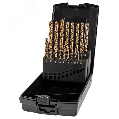 Набор сверл по металлу, индустриальных, 19 предметов, 1,0-10,0 мм x 0,5, DIN 338, HSS-E Co5, Тип VA, 5xD