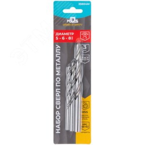 Набор сверл по металлу HSS, угол заточки 118град, в блистере, 3 шт. (5-6-8мм)