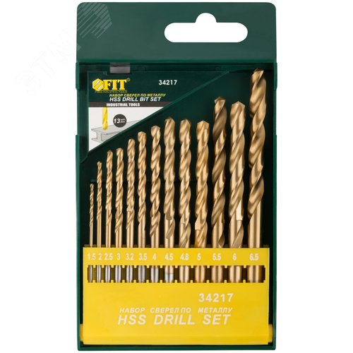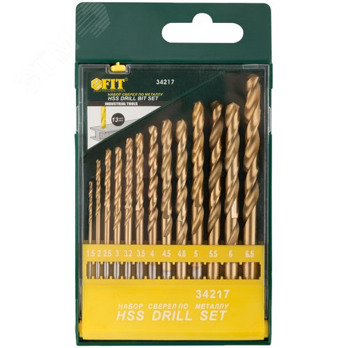 Набор сверл HSS по металлу, титановое покрытие, 13 шт (1.5-2-2.5-3-3.2-3.5-4-4.5-4.8-5-5.5-6-6.5 мм)