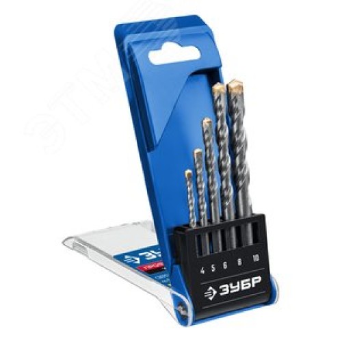 Набор сверл по бетону усиленных, ПРОФЕССИОНАЛ 5 шт: d 4-5-6-8-10 мм 3-х гранный хвостовик