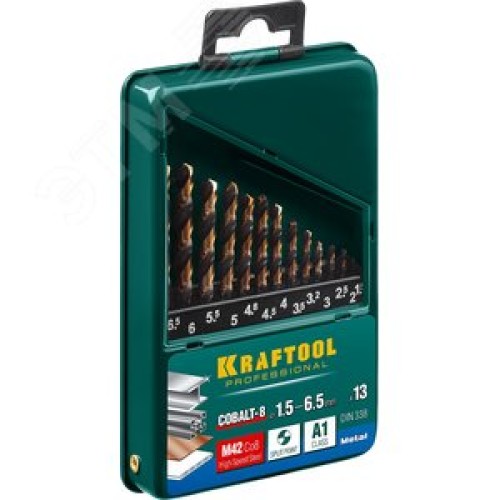 Набор сверл по металлу COBALT 13шт(1.5-6.5мм), HSS-Co(8%), сталь М42(S2-10-1-8)