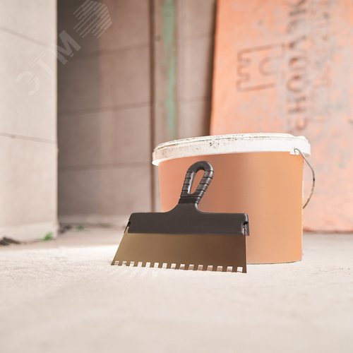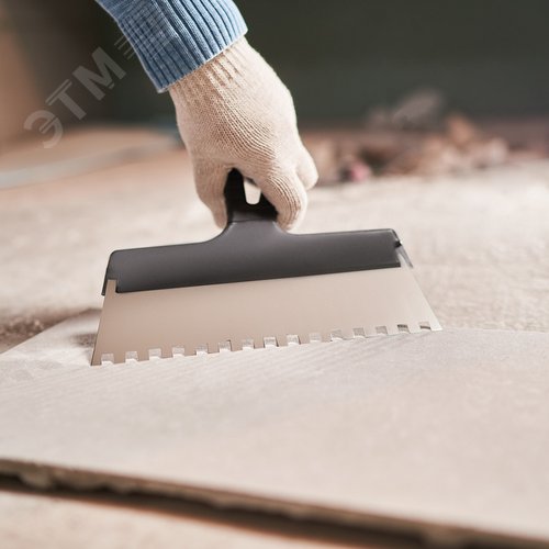 Преимущества Благодаря зубчатой кромке шпатель идеально подходит для работы со строительными и клеевыми смесями