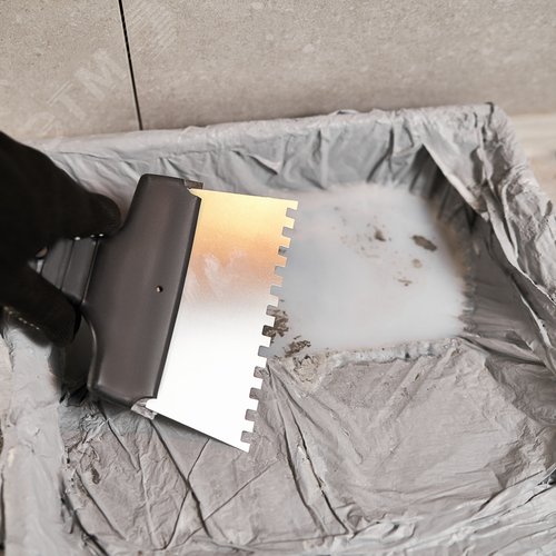 Преимущества Благодаря зубчатой кромке шпатель идеально подходит для работы со строительными и клеевыми смесями