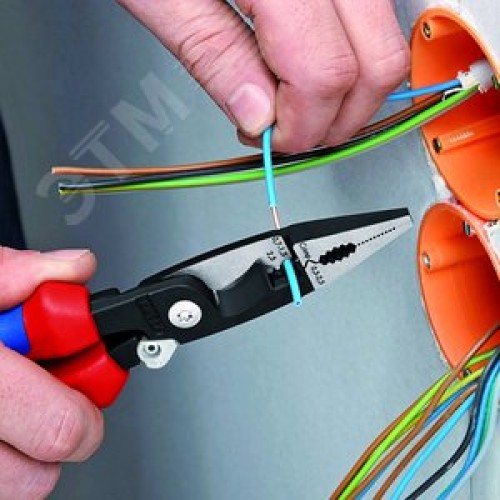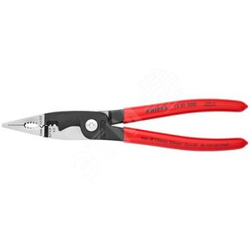 Клещи электромонтажные 6-в-1 захват плоского и круглого материала гибка удаление заусенцев снятие изоляции 075 - 15 + 25 мм обжимка контактных гильз 05 - 25 мм кабелерез 15 мм (5x25 мм) L-200 мм чёрные обливные рукоятки