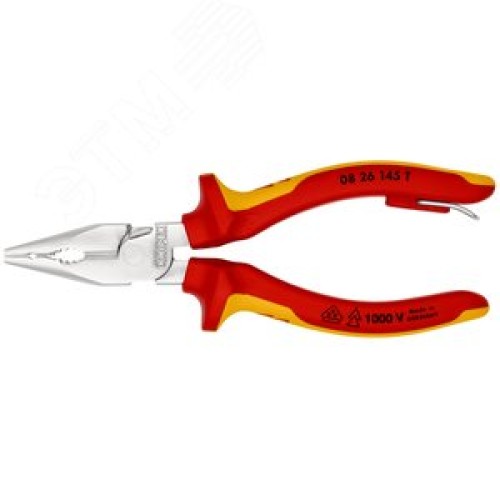 Пассатижи остроконечные с удлиненными губками VDE 1000V резка - проволока средней твердости 3мм твердая проволока 2мм кабель 8мм (16мм) L=145мм диэлектрические хромированные двухкомпонентные рукоятки крепление для страховки