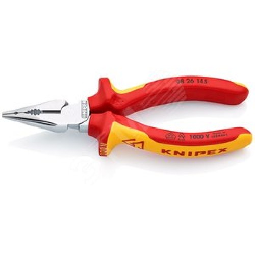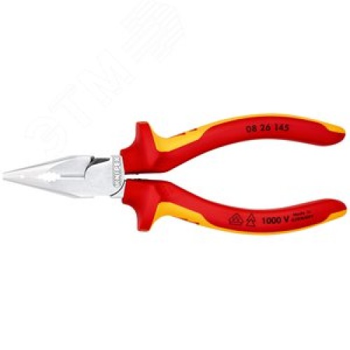 Пассатижи остроконечные с удлиненными губками VDE 1000V резка - проволока средней твердости 3мм твердая проволока 2мм кабель 8мм (16мм) L=145мм диэлектрические хромированные двухкомпонентные рукоятки
