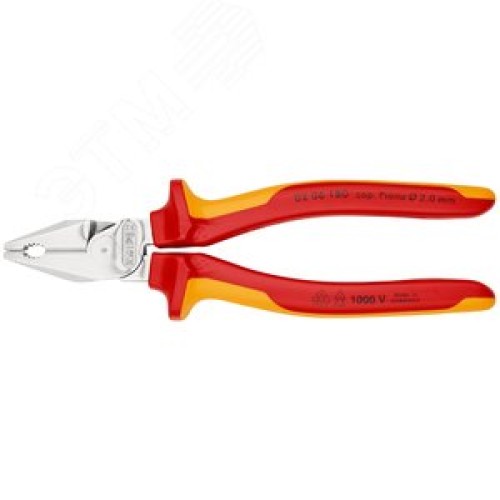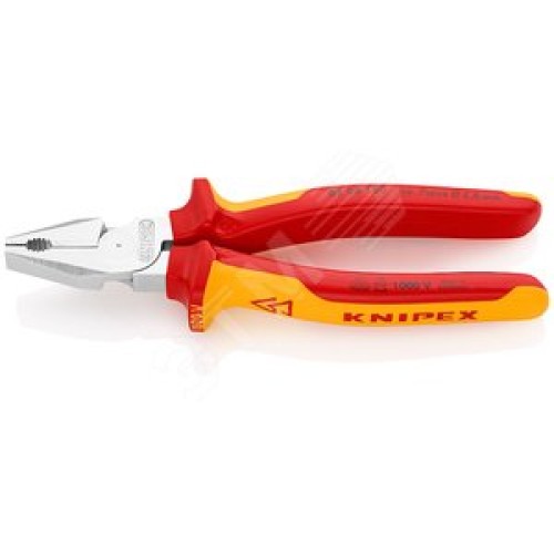 Плоскогубцы комбинированные VDE 1000V рез твердая проволока 25мм рояльная струна (HRC 59) 2мм кабель 115мм (16мм) L=180мм диэлектрические хромированные двухкомпонентные рукоятки