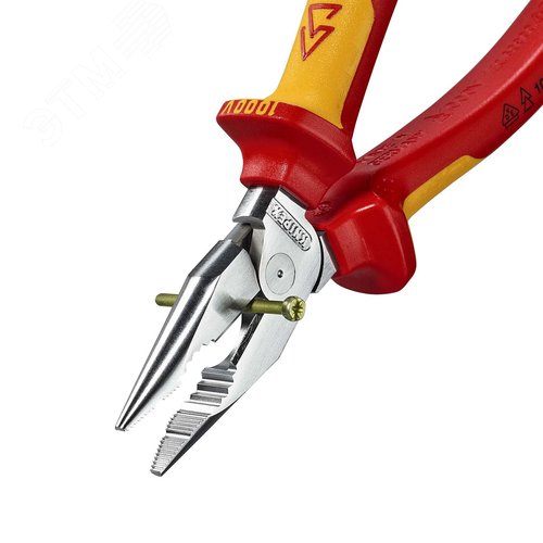 Плоскогубцы комбинированные остроконечные с удлиненными губками, 185 мм, хромированные, 2-компонентные диэлектрические ручки