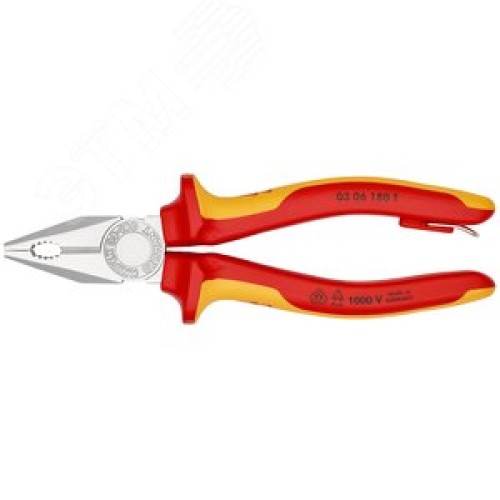 Плоскогубцы комбинированные VDE 1000V резка - проволока средней твердости 34мм твердая проволока 22мм кабель 12мм (16мм) L=180мм диэлектрические хромированные двухкомпонентные рукоятки крепление для страховки