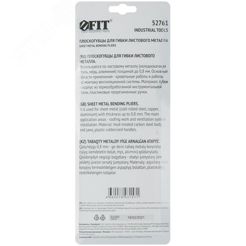 Плоскогубцы для гибки листового металла, прорезиненные ручки, 230 мм