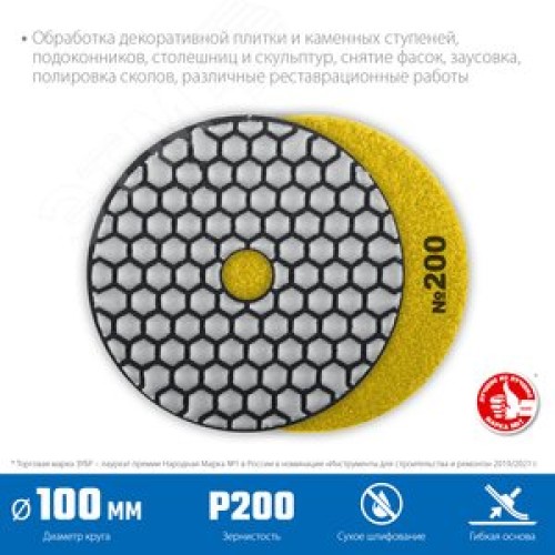 Круг алмазные гибкий шлифовальный (Черепашка) для сухого шлифования, 100мм, №200