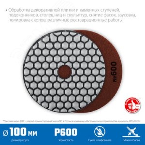 Круг алмазные гибкий шлифовальный (Черепашка) для сухого шлифования, 100мм, №600