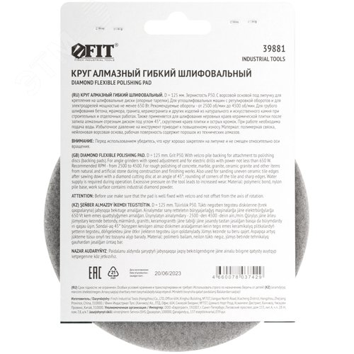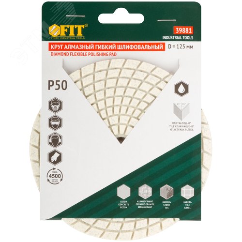 Круг алмазный гибкий шлифовальный АГШК (липучка), влажное шлифование, 125 мм, Р 50