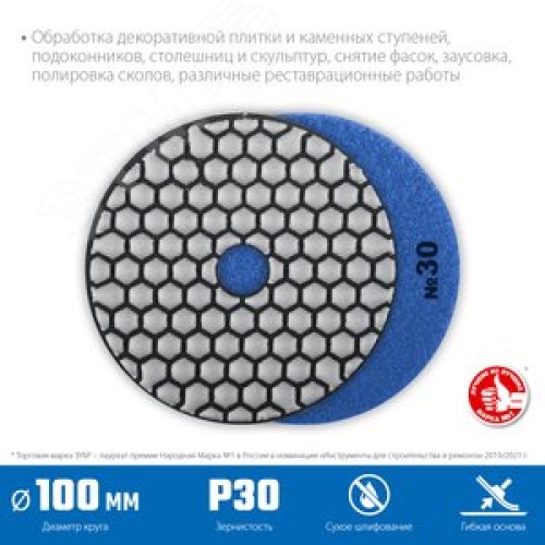 Круг алмазные гибкий шлифовальный (Черепашка) для сухого шлифования, 100мм, №30
