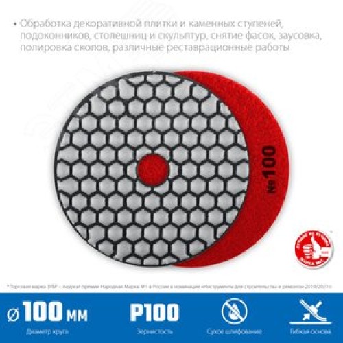 Круг алмазные гибкий шлифовальный (Черепашка) для сухого шлифования, 100мм, №100