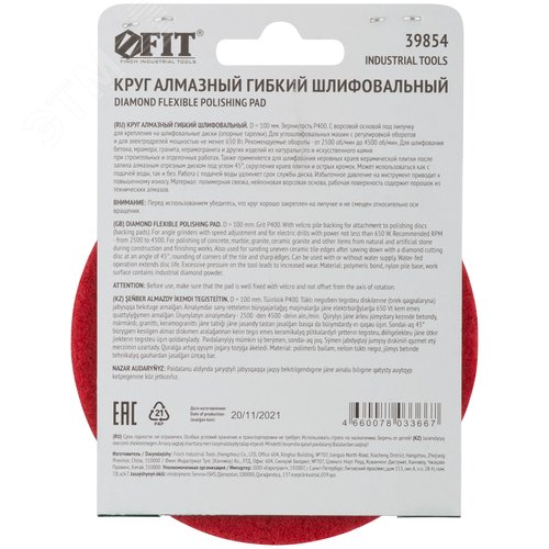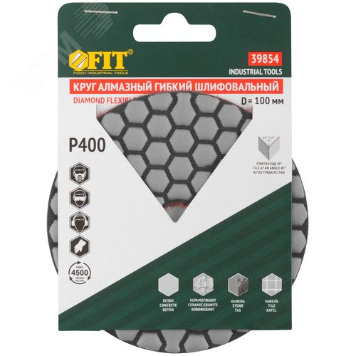Круг алмазный гибкий шлифовальный АГШК (липучка), сухое шлифование, 100 мм, Р 400