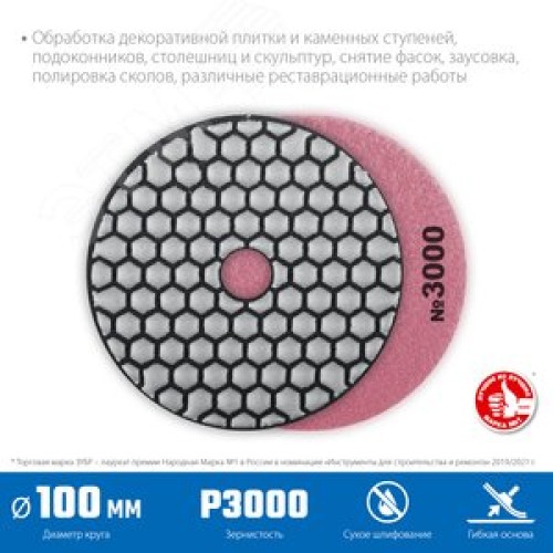 Круг алмазные гибкий шлифовальный (Черепашка) для сухого шлифования, 100мм, №3000