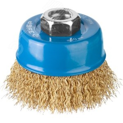 Щетка чашечная для УШМ, витая латунированная стальная проволока 0,3мм, 60ммхМ14 ''Профессионал''.