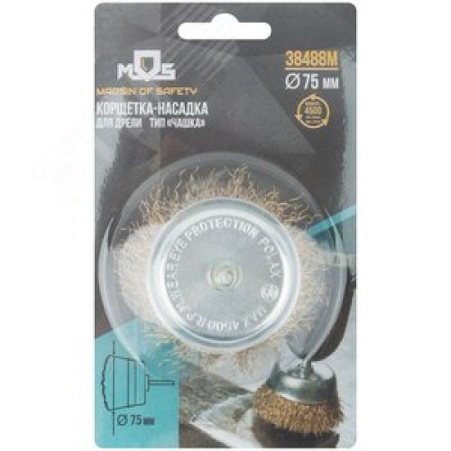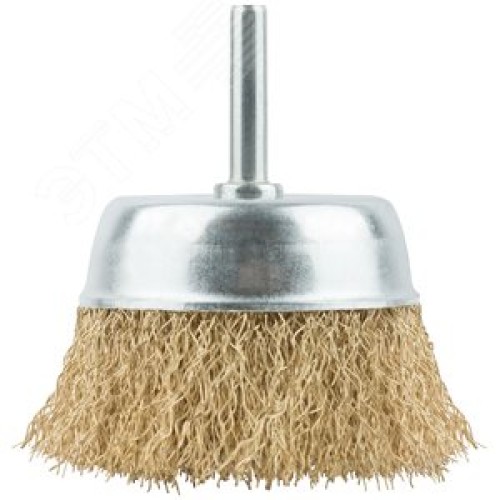 Кордщетка, тип ''чашка'', со штифтом, стальная латунированная волнистая проволока 75 мм