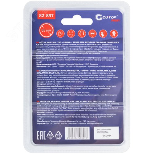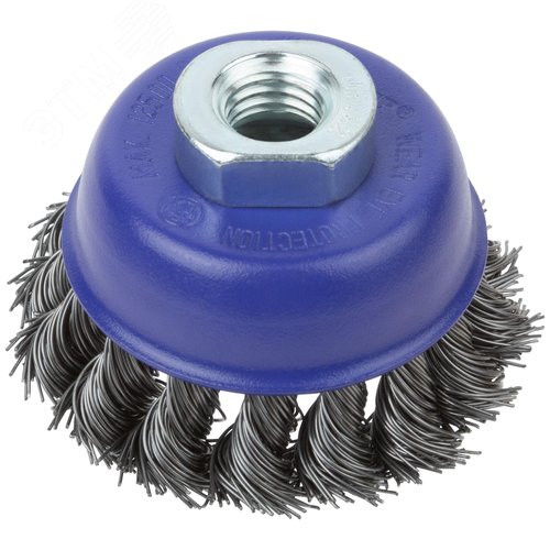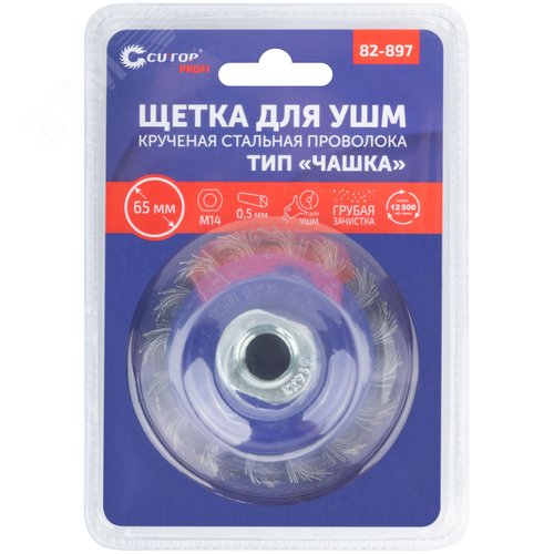 Щетка для УШМ, М14, Чашка, крученая витая проволока 0,5 мм, 65 мм, блистер, Profi