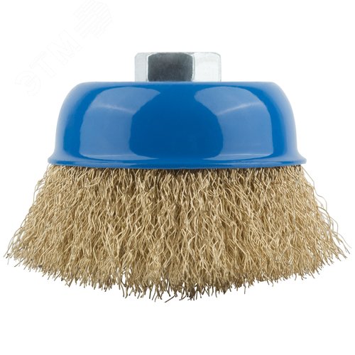 Кордщетка, тип ''чашка'', гайка М14, стальная латунированная волнистая проволока 75 мм