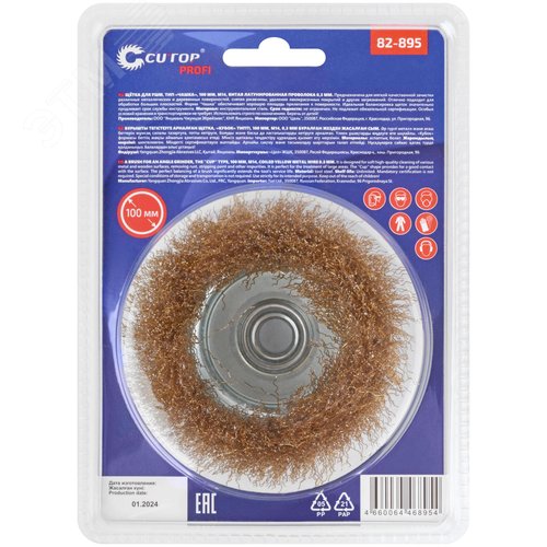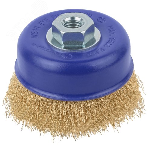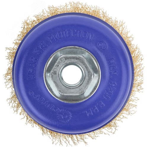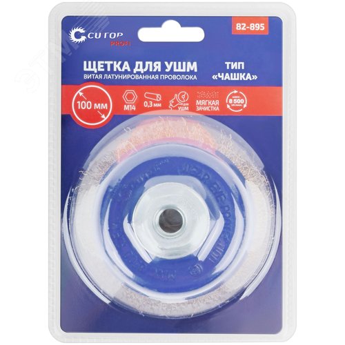 Щетка для УШМ, М14, Чашка, латунированная витая проволока 0,3 мм, 100 мм, блистер, Profi